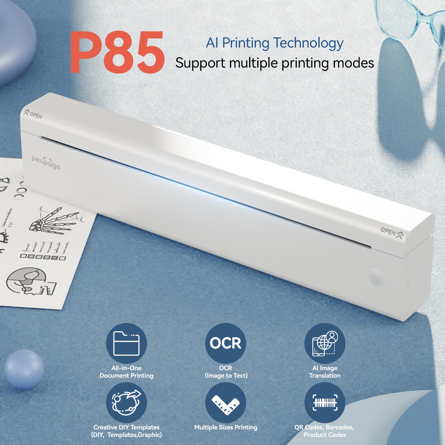 PeriPage P85 Portable Thermal Printer HD【Support A4 and Tattoo printing】